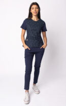 El pantalón está confeccionado en Bengalina con lycra. Tela con gran elasticidad, no se deforma al uso. Se adapta a las formas de cuerpo haciendo que los ambos sean muy cómodos. Composición: rayon 74 %, nylon 23 % y spandex 3 %.